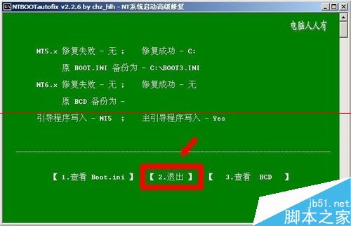 6、修復完畢,選擇②退出,重啟電腦,就能夠正常引導硬盤了。