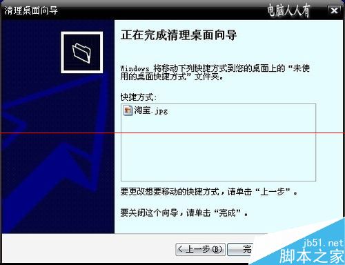 7、點擊完成,就會將這個假淘寶的圖標移動到未使用的桌面快捷方式文件夾內。