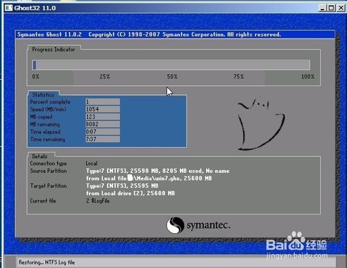 3、確定以上信息后點擊確定,提示是否開始立即還原,點擊“是”,然后開始還原。