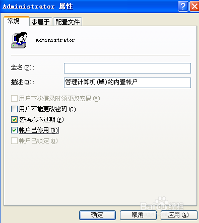 3、雙擊administor,彈出窗口中把用戶賬戶已禁用前面的溝溝點掉就OK了,見圖六