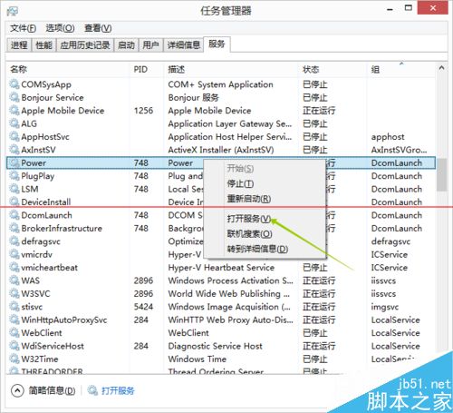 2、右鍵選擇這個程序,打開服務,如圖所示。