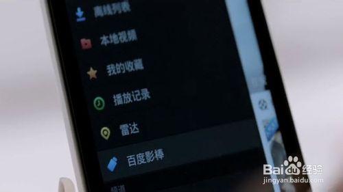 4、打開手機上已安裝的百度視頻,在左側(cè)菜單欄中選擇“百度影棒”,打擊打開,等待掃描進行設(shè)備連接。