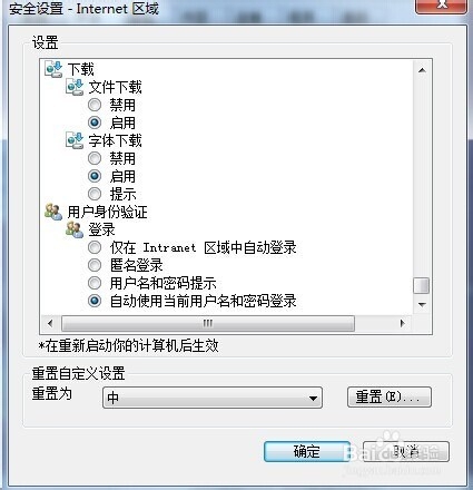 2、自定義級別-直接拉到最后 看到用戶身份驗證,改為 自動使用當前用戶名和密碼登錄即可,到此,問題解決