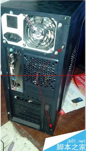 2、檢查你的電腦是不是如上所說的狀況( 有些朋友經常把開機無顯示當成開機無任何反應),用十字起擰下機箱側板螺絲 打開機箱側板 注意別弄錯 是離USB接口遠的的那一塊側板