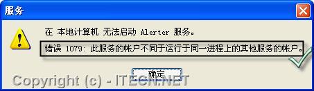 嘗試在“服務”管理單元窗口手動啟動服務時,系統提示“錯誤1079:此服務的帳戶不同于運行于同一進程上的其他服務的帳戶”,如圖7所示。