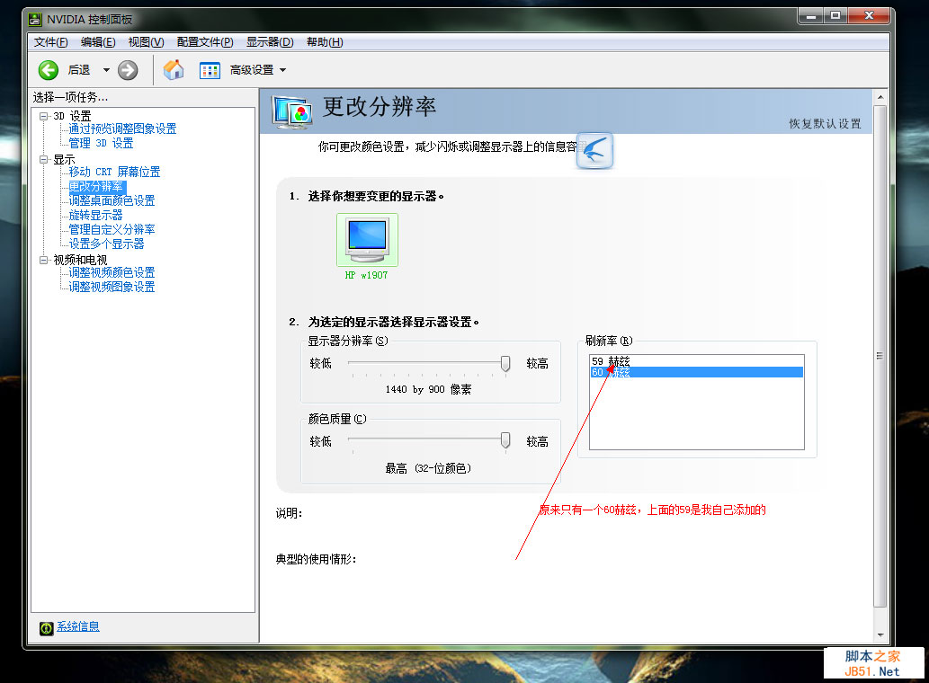 我從驅(qū)動精靈上下載了英偉達(dá)的最新顯卡驅(qū)動,結(jié)果重啟后還是出現(xiàn)了Error in InitRenderer().Shutting down,我就開始找原因。以我個人的技術(shù),目前能動的地方只有控制面板的英偉達(dá)顯卡控制中心(應(yīng)該叫做NVIDIA控制面板),我隱約記得以前XP運行游戲的時候貌似刷新率是59赫茲(HZ),而在win7的這個選項里只有一個60,貌似就是這個原因?qū)е翪F進(jìn)不去。