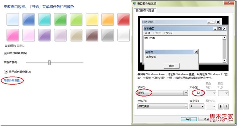 2. 如果是Windows 7系統,就在桌面空白處選擇“個性化”,然后點擊“高級外觀設置”,接下來就和XP一樣照葫蘆畫瓢了。如圖4。