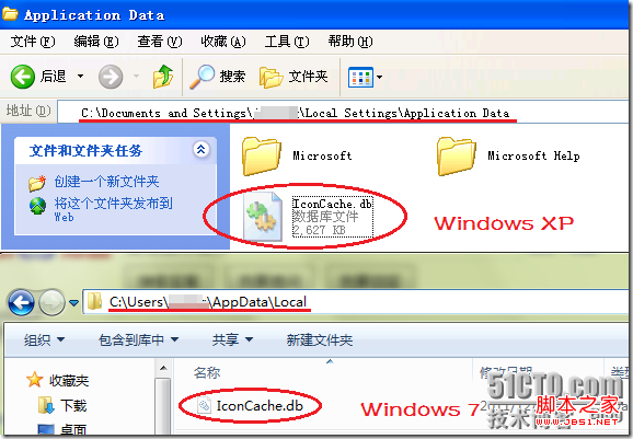 1. 如果是Windows XP系統,刪除C:/Documents and Settings/用戶名/Local Settings/Application Data/IconCache.db文件;如果是Windows 7系統,刪除C:/Users/用戶名/AppData/Local/IconCache.db文件。如圖2。