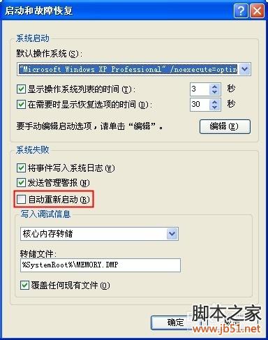 3、把自動重新啟動復選框里√點掉,單擊確定。