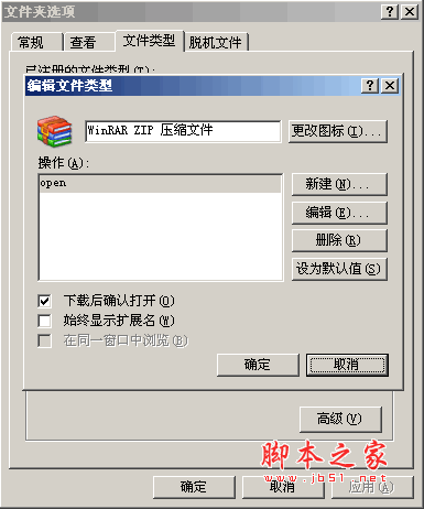 (3)接著單擊“編輯”按鈕,在彈出界面的下方有四個復選框,其中有一個“下載后確認打開”項,勾選該項前的復選框并單擊“確認”按鈕,保存退出即可。