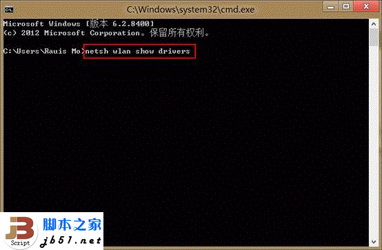 2、在彈出的命令提示符界面,輸入“netsh wlan show drivers”后回車(注:中間使用空格分開)。如下圖所示: