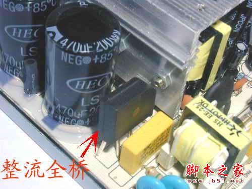 首先,我們要知道計算機開關電源的工作原理。電源先將高電壓交流電(220V)通過全橋二極管(圖1、2)整流以后成為高電壓的脈沖直流電,再經過電容濾波(圖3)以后成為高壓直流電。