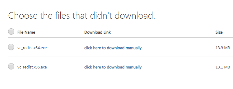 1. 下載VC Redistributable for VS2015,網(wǎng)址https://www.microsoft.com/en-us/download/confirmation.aspx?id=48145