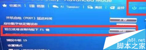 3、在BIOS中找到“若出現錯誤等待按下F1鍵”的設置,設置為關閉或Disable,在按F10保存即可解決。