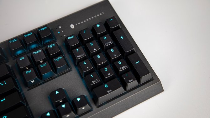 鍵盤的數(shù)字鍵區(qū)域設(shè)計(jì)了雷神的“THUNDERROT”的LOGO,整體配色的話,雷神娜迦海妖這款鍵盤相對(duì)之前的紅蜘蛛、藍(lán)血電鍍系列更加的低調(diào)內(nèi)斂,這樣的風(fēng)格非常適合那些實(shí)用至上,追求品質(zhì)和格調(diào)的人選擇。