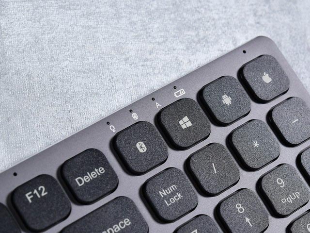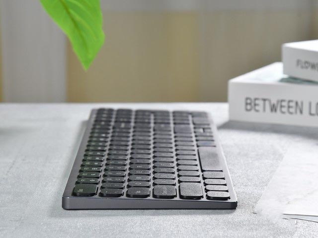 鍵盤采用了99鍵的特殊配列,對鍵盤的功能鍵進行了一番增減。鍵盤右上角安置了系統切換按鍵和藍牙連接鍵,按鍵上方則是一排四顆各類指示燈。鍵盤的Ctrl、Win、Alt等按鍵也會根據系統不同實現不一樣的功能。