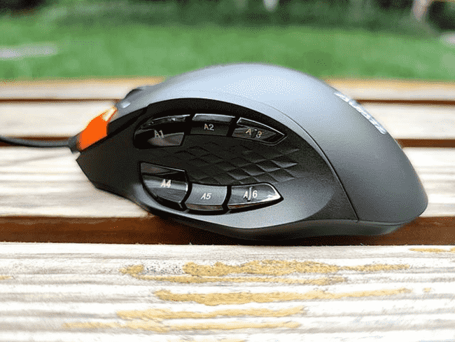 黑爵AJ337鼠標采用了多側鍵鼠標設計,總共12個鍵位布局,側面就有6個,較大的體型和較為豐滿的握感可以給手掌充分的支撐,個人覺得非常的舒服。
