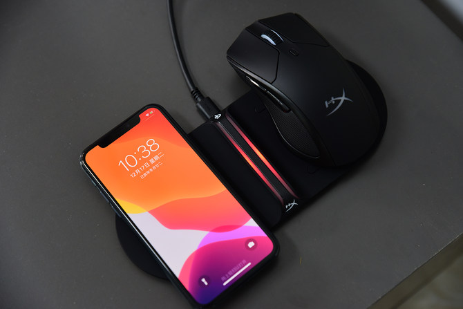 有了無線充電技術的加持,帶來了真正無線化的使用體驗,只需要輕輕一放,充電板將會亮起紅燈,鼠標背光也會開啟,提醒你已經進入充電狀態,并且HyperX 標槍RGB游戲鼠標支持的是標準的Qi充電協議,可以兼容99%以上的無線充電器。