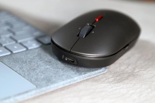 小米小愛鼠標采用了鋁合金的滾輪,提供了更優質的觸感。同時,在鼠標上加入了紅色的語音按鍵,長按是啟動小愛同學,短按是開啟語音輸入模式,紅色的按鍵與黑色的鼠標也是很搭配的。