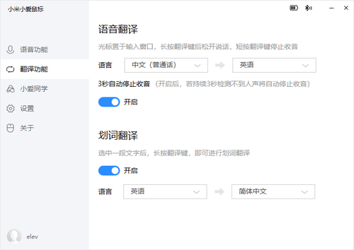 在小米小愛鼠標的左側還配備了翻譯按鍵,可以實現中英文的一鍵翻譯,日常使用中會帶來更大的便利。