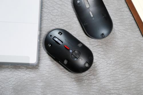 當鼠標與電腦連接之后,在商標上會亮起藍色的指示燈。小米小愛鼠標支持藍牙以及USB接收器兩種連接方式,可以實現連接兩臺設備,只需要通過長按鼠標的鼠標左鍵和右鍵3秒即可在兩種連接方式之間進行切換,對于同時需要使用兩臺設備的用戶來說,一個小米小愛鼠標就可以同時滿足兩臺設備的需求。