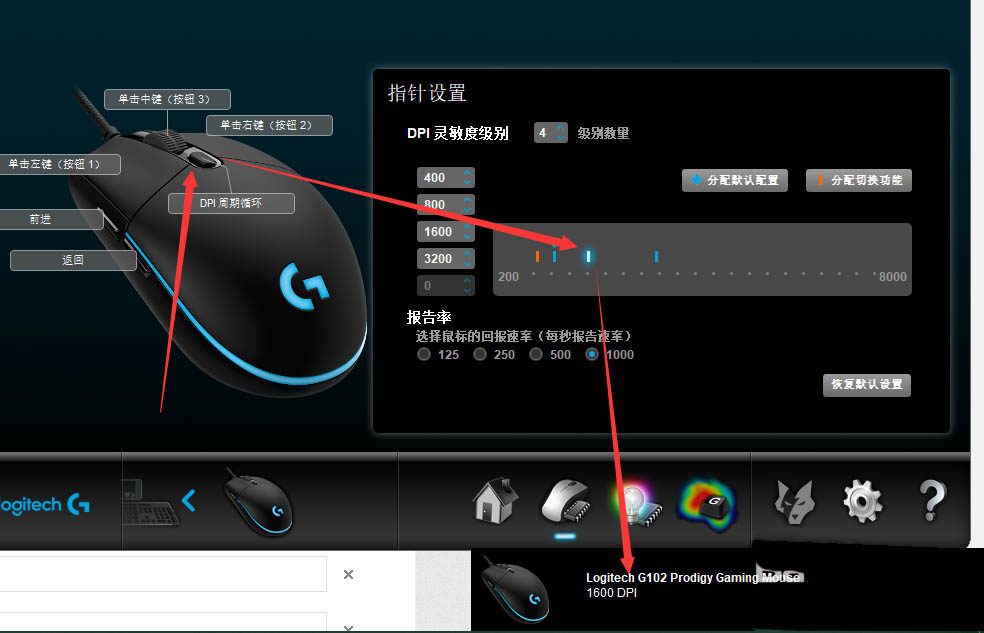 以上就是羅技鼠標G102設置背光顏色,DPI等相關參數的教程,希望大家喜歡,請繼續關注武林網。
