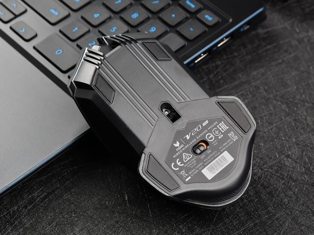 握持手感上,這款鼠標(biāo)也非常不錯(cuò),恰到好處的重量讓玩家有種踏實(shí)的感覺,無論是抓握還是趴握,都有很不錯(cuò)的握持手感。尤其是趴握,雷柏V20 PRO雙模無線幻彩RGB游戲鼠標(biāo)還在底部配置了兩個(gè)掌托,讓手比較大的玩家在趴握時(shí)非常舒適。底部的四塊特氟龍腳貼也讓鼠標(biāo)滑動(dòng)暢通無阻。即使長時(shí)間使用,也不會(huì)有什么疲憊感產(chǎn)生。