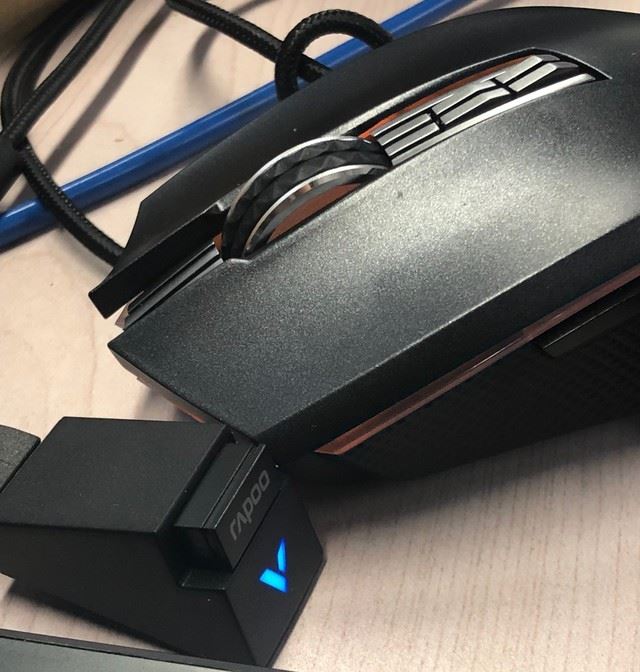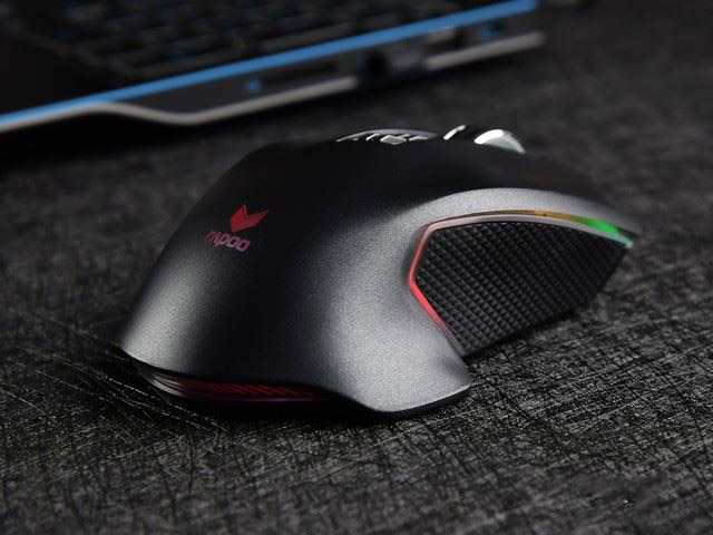 雷柏在鼠標(biāo)兩側(cè)配備了加厚一體式成型點(diǎn)狀紋理防滑側(cè)裙,材質(zhì)是橡膠,嚴(yán)絲合縫的與各部件相連接,表面為點(diǎn)狀紋理,能夠有效增加摩擦力,從而提升操控的穩(wěn)定性。在右側(cè)裙擁有一長一短兩個(gè)自定義按鍵,可以看出這款鼠標(biāo)依然更偏向于右手用戶。