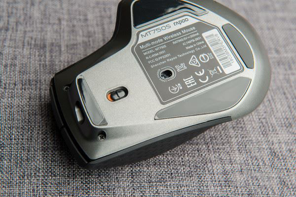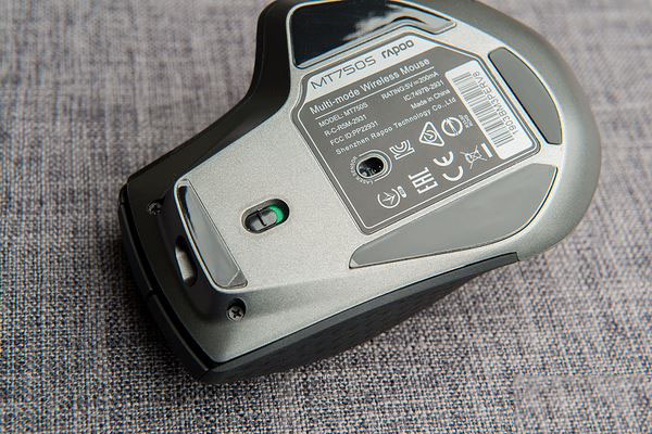雷柏MT750S的電源開關位于鼠標底部,直接撥開即可開機。