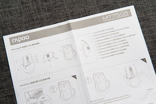 由于MT750S具備多模多連接的工作方式,同時也具備較多的按鍵,使用前還是看一下說明書比較好,還好說明書以圖文并茂的方式,按鍵說明和使用方法一目了然。