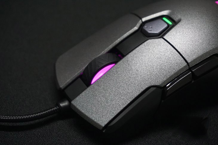 鼠標的左右按鍵和后蓋均采用了防汗類膚質涂層,觸感舒適,擁有一定的阻尼感,不至于太滑。
