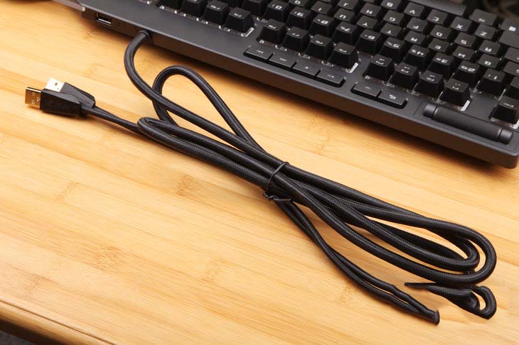 ROG STRIX FLARE機械鍵盤使用了一根粗壯的編織線。