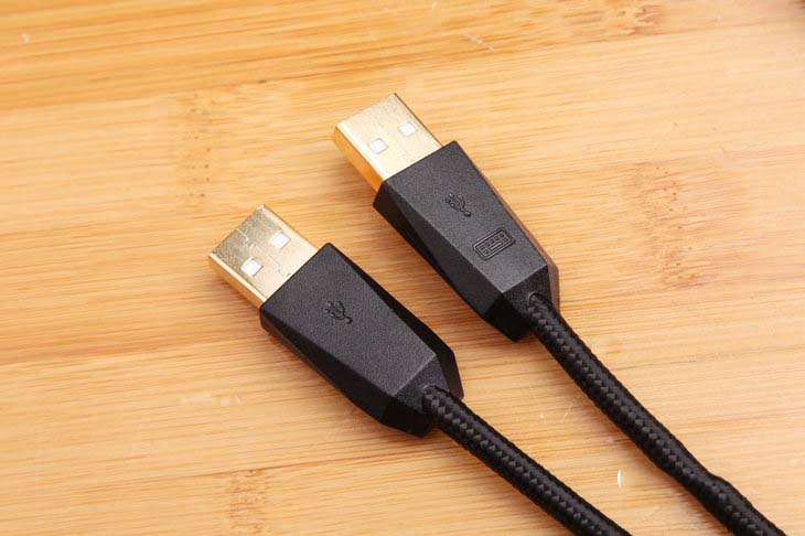 由于鍵盤上存在有USB直連口,編織線纜的末端延伸出兩根USB連接線,其中一根為鍵盤專用使用,另一根則是供USB HUB使用。