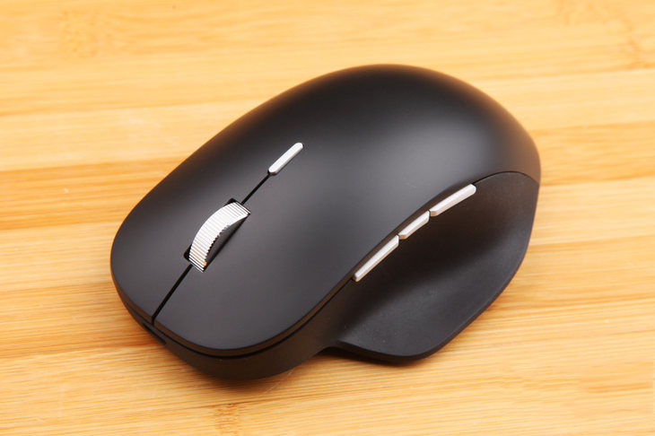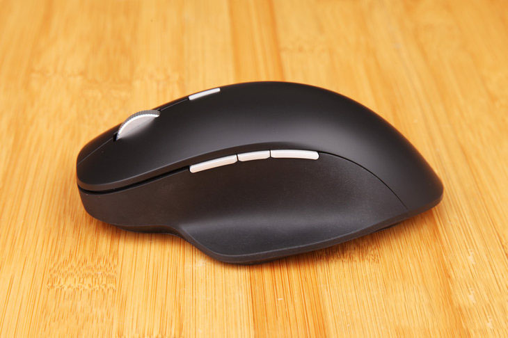鼠標側裙采用了橡膠材質,可以很好的將大拇指放在上面,起到很好的承托作用,三顆側鍵根據微軟的描述,可以通過驅動軟件進行設置,實現預先設定的功能,比如能實現DPI的調整,這對于設計師或有著鼠標高精度要求的辦公人員來講十分重要。