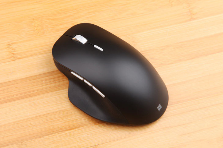 從鼠標正面我們可以看到,這款鼠標的整體是一款較大體積的產品,產品外觀風格也是一貫的簡潔風,黑色的鼠標機身、銀色的按鍵以及白色的微軟標志,除此之外沒有任何冗余的東西。