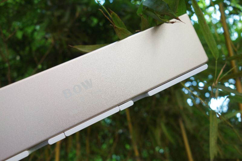 B.O.W 航世 HB199 折疊藍牙鍵盤的外觀酷似周星馳電影中的月光寶盒,視覺上給人感覺和電影中的月光寶盒一模一樣。土豪金的配色,鍵盤的外表面是金屬噴涂,摸著很有觸感。
