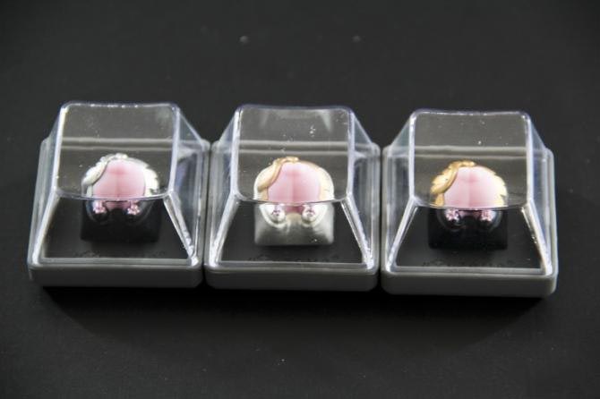 貓屁屁變色金屬鍵帽共有三款,兩個鍵帽本體是黑色,貓屁屁顏色為黑+銀和黑+金,一個鍵帽本體是銀色,貓屁屁顏色為銀+金。貓爪依然是熟悉的粉色,繼承了貓爪鍵帽的精髓。鍵帽整體上都是金屬材質,但是貓屁屁可是采用了軟膠材質,并且將貓蛋蛋也做的惟妙惟肖,按上去會告訴你什么叫做真正的“Q彈”。
