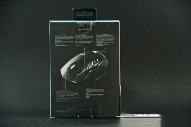 產品背面印著鼠標的主要特征,比如人體工學設計,實時調節DPI等都是非常實用的設計。