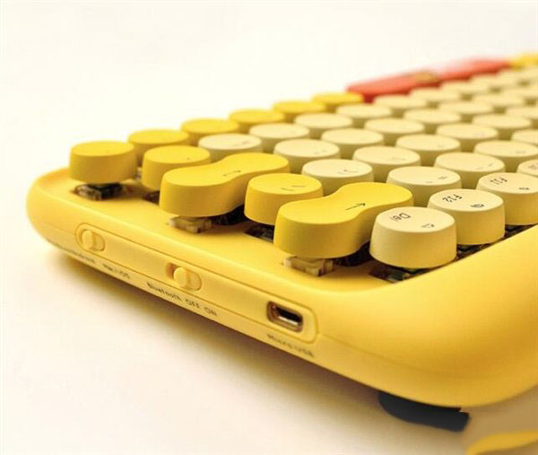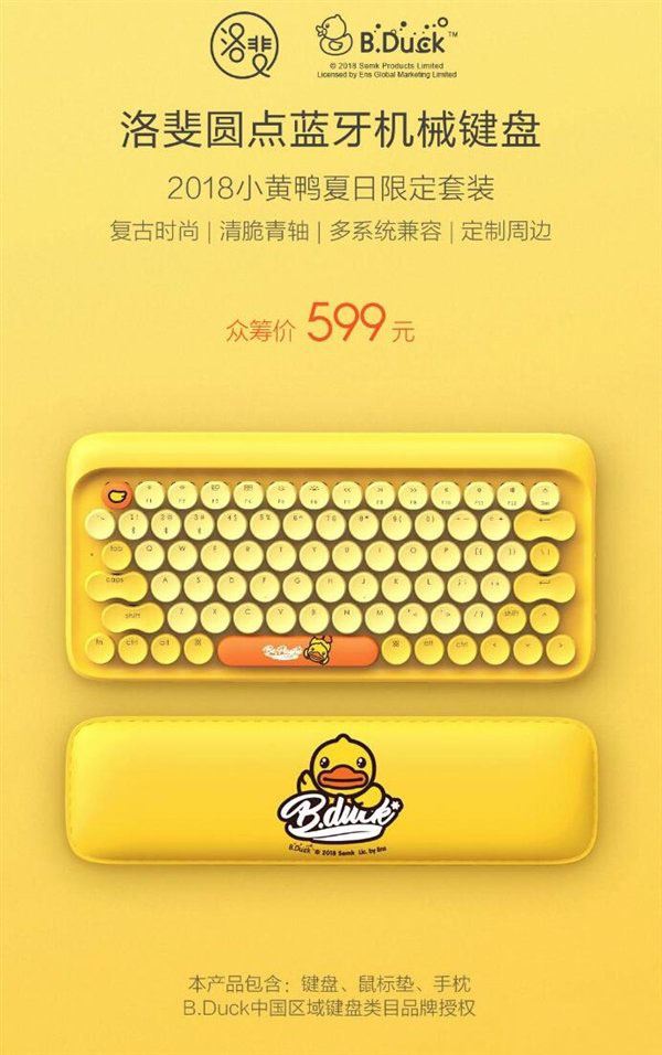 其設計靈感來自復古打字機造型,搭配圓形鍵帽和青軸軸體,與B.Duck小黃鴨跨界合作,形成黃橙撞色設計。