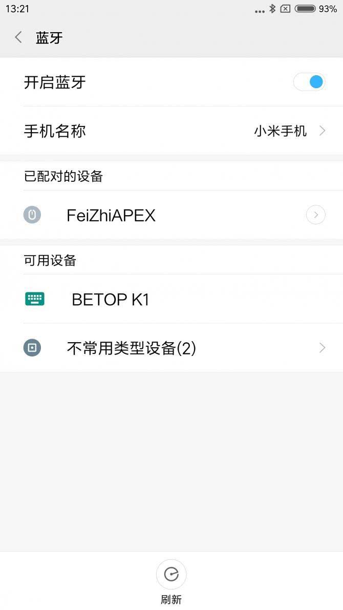 要連上手機也很簡單,打開手機藍牙,打開鍵盤開關,這個BETOP K1就是啦。