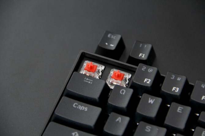 北通K1采用了紅軸軸體,也是非常適合游戲玩家的軸體,因為鍵盤整體有背光,所以采用了透明軸體,讓背光更加均勻。北通K1也采用了正常的鍵帽大小和正常的按鍵間距,并沒有因為鍵盤體積小而縮水。