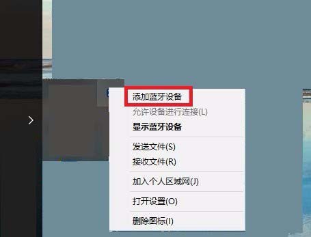 2、在彈出的“菜單欄”選擇,添加“藍牙設備”。