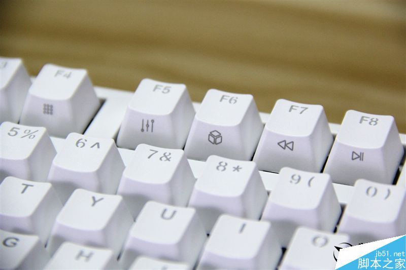 ↑↑↑這套純PBT材質(zhì)的鍵帽表面印字工藝為激光蝕刻,顏色較淺深度也不大。正刻為Windows功能圖標,測刻為Mac功能圖標,方便Windows/Mac兩種平臺不同按鍵功能的識別。