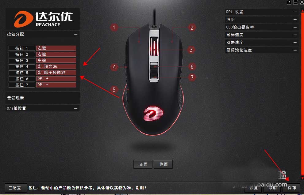 7、點(diǎn)擊按鈕分配,即可看到鼠標(biāo)的2個(gè)側(cè)鍵已經(jīng)加載成功了,點(diǎn)擊右下角保存即可。