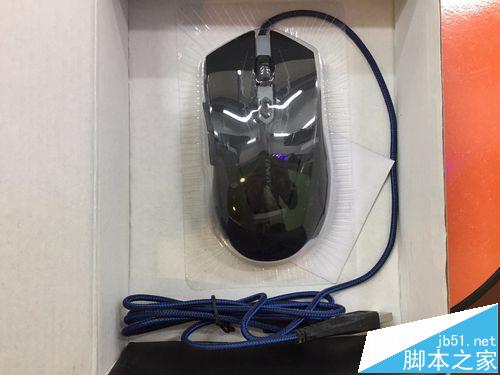 3、打開盒子可以發(fā)現(xiàn)鼠標安靜的在其中,看上去就像是圖片一樣,因為采用的也是和封面一樣的顏色設置。
