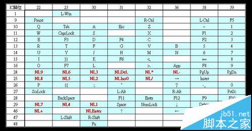 6、下圖是一些機械鍵盤按鍵信號連接圖。例:F5、1、2、3、4、7、8、9、pgdn、0、prt、F10、End不良,則可單獨清理此條線路,包括進液周邊的按鍵。
