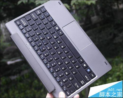 3、輕松卡住10.1寸平板,這款鍵盤因?yàn)槿饘僭O(shè)計(jì),卡口比較硬,轉(zhuǎn)軸旋轉(zhuǎn)過程中比較容易給平板的塑料外殼留下劃痕