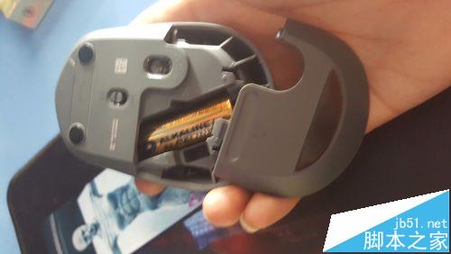 3、把鼠標翻過來打開電池倉就能看到電池和USB接收器