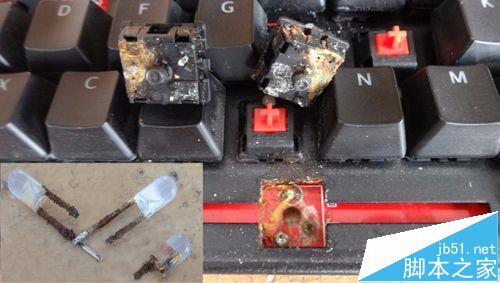 5、液體:進液后,鍵盤要立即斷電,拔下USB插頭,不然鍵盤會有短路的風險。此外,進液后多發(fā)生”串鍵“的現(xiàn)象。即:打Q出QWERYUIOP等字符。這時,可針對進液區(qū)域,拔下鍵帽后針對亂碼的字符進行干燥處理。