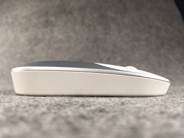 整個(gè)外觀看起來(lái)非常干凈,沒(méi)有一絲多余的元素在里面,因?yàn)樗行枰{(diào)節(jié)的功能都放在了鼠標(biāo)的底部,將其翻轉(zhuǎn)過(guò)來(lái),兩個(gè)圓圈的造型將不同的功能區(qū)分割出來(lái),上方有一個(gè)指示燈/按鈕,指示燈旁邊是藍(lán)牙以及2.4GHz 的標(biāo)識(shí),按下這顆指示燈可以在藍(lán)牙 & 2.4GHz 模式之間切換,此外在指示燈的下方還有開(kāi)關(guān)以及光電傳感器(1200dpi)。